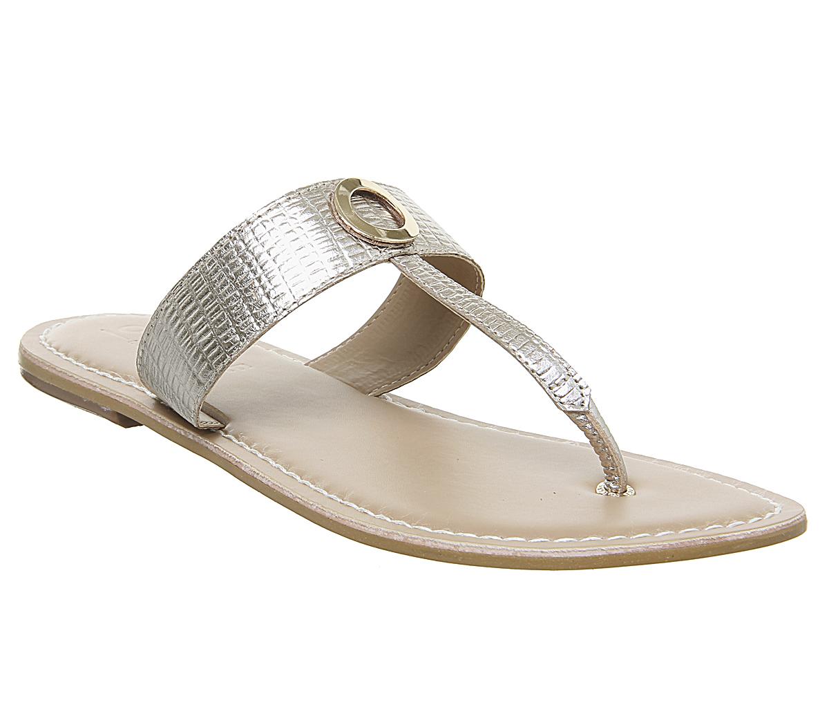 Modern, slip on sandals with a ring detail. Simple yet stylish.