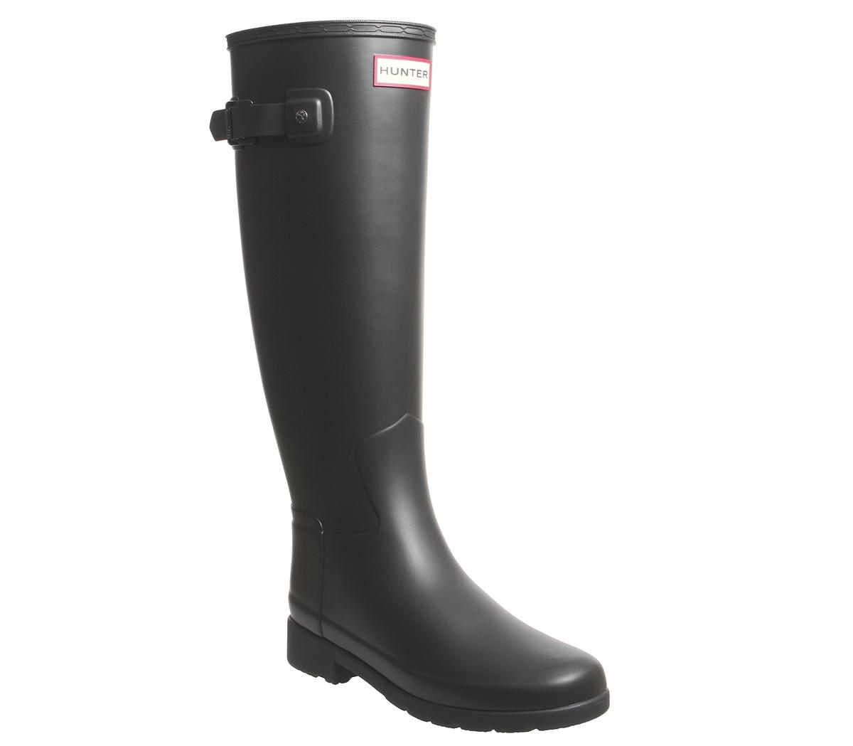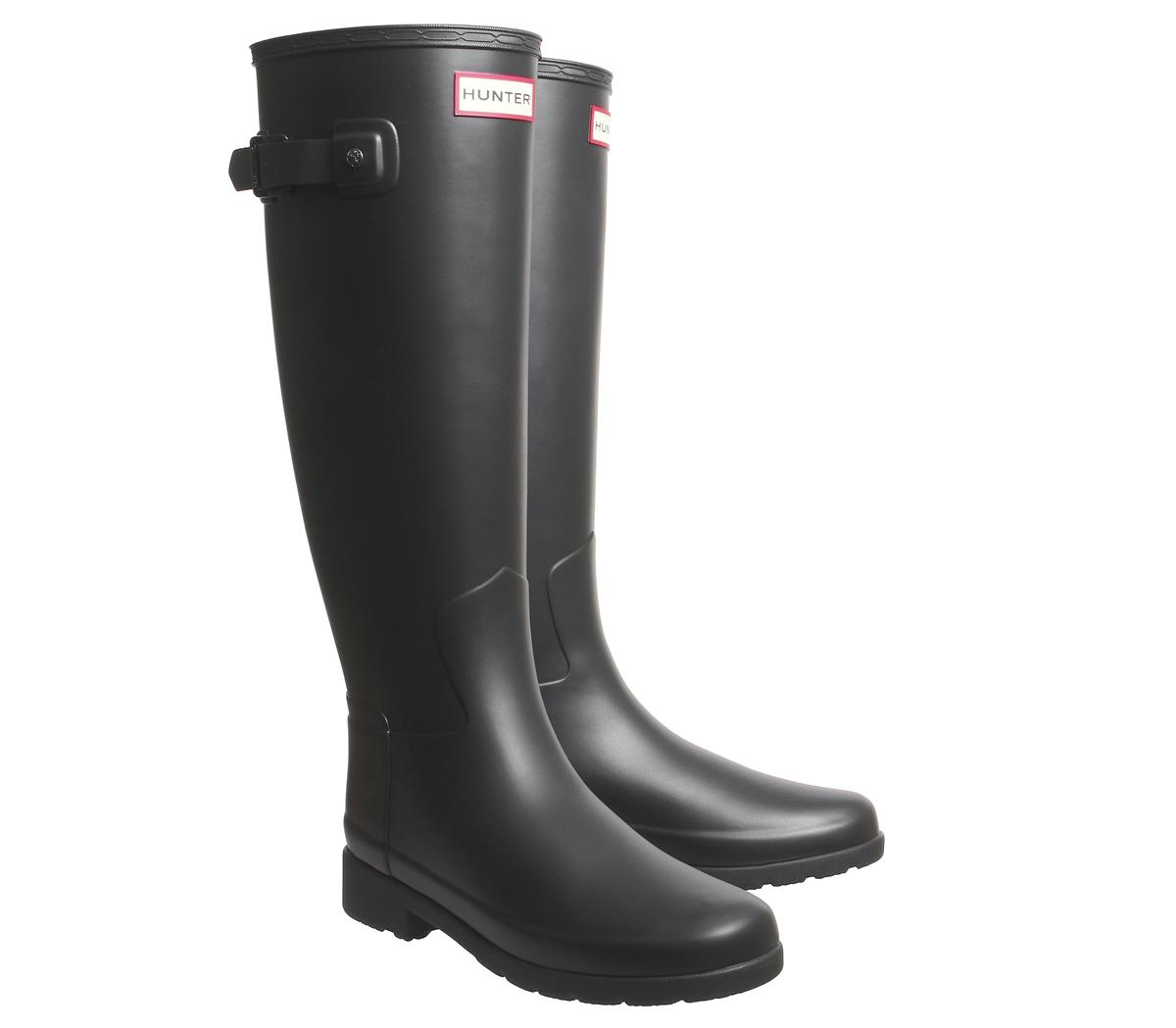 Diese raffinierte Version des Original Tall Gummistiefels präsentiert sich mit einem Obermaterial aus schwarzem Gummi, verstellbarem Seitenriemen und charakteristischem Hunter-Branding.