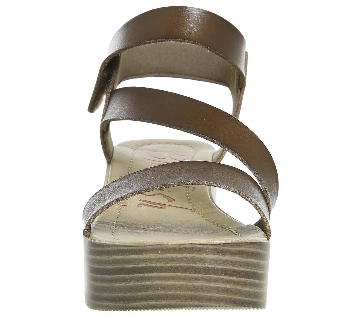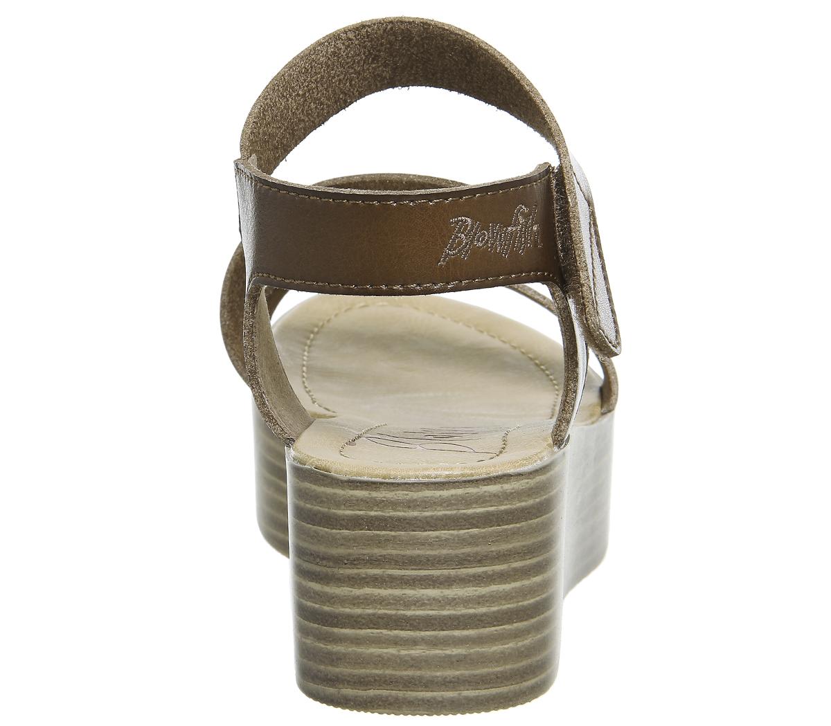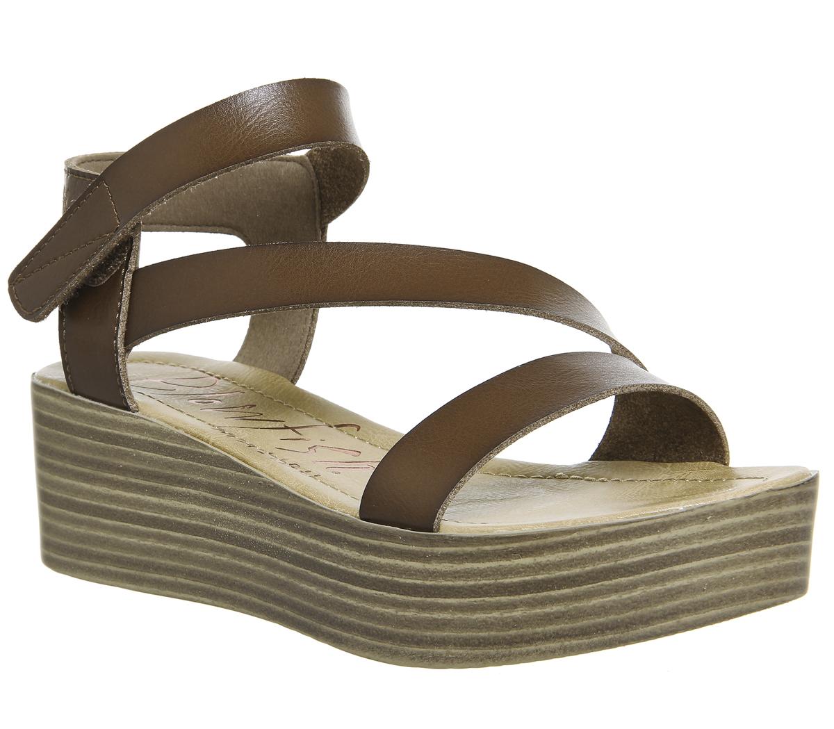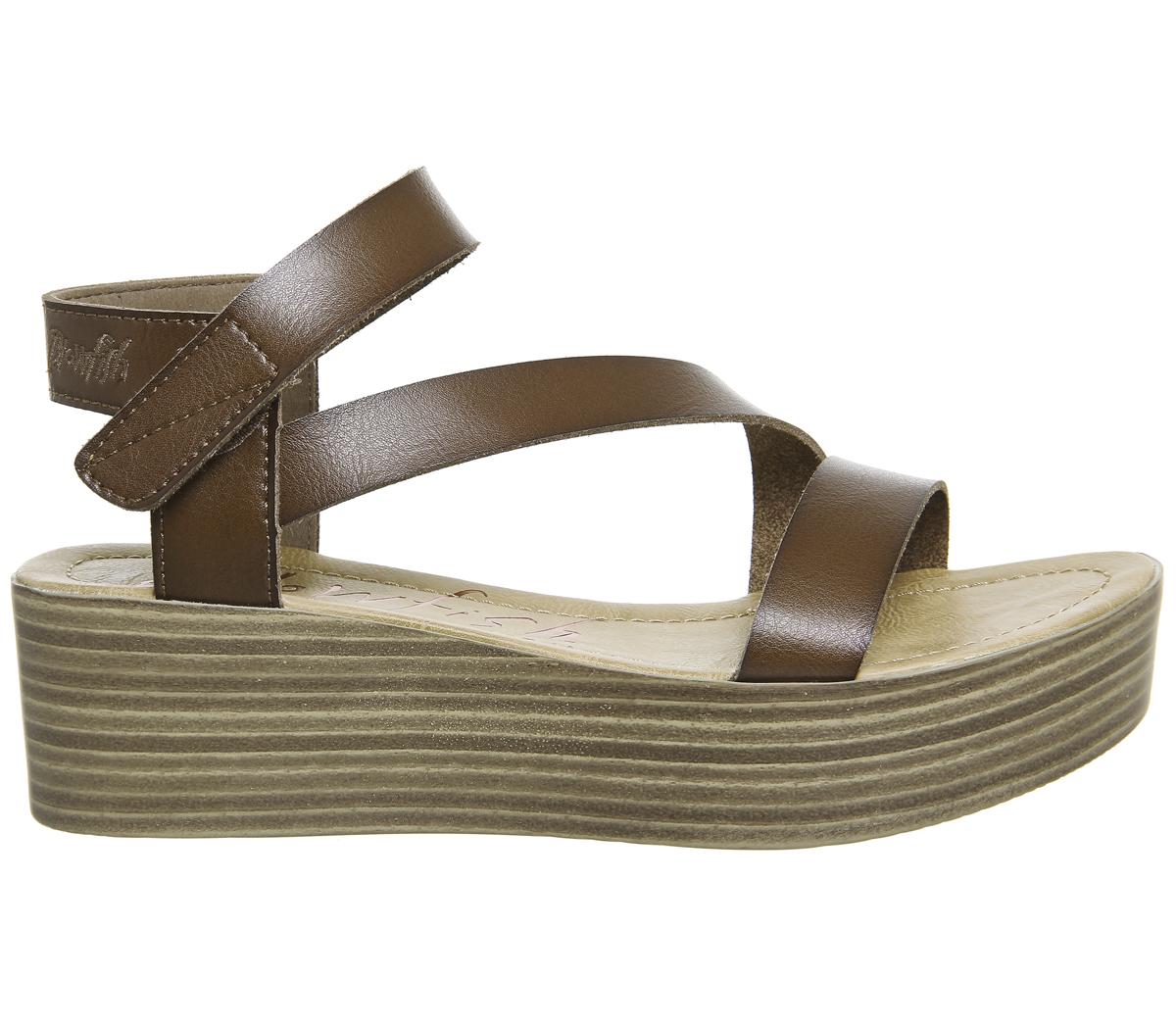 Diese klobige „Lover“ Plateausandale in Tan Brown von Blowfish präsentiert sich im schlichten Wickeldesign mit einer erhöhten, naturfarbenen Sohle.